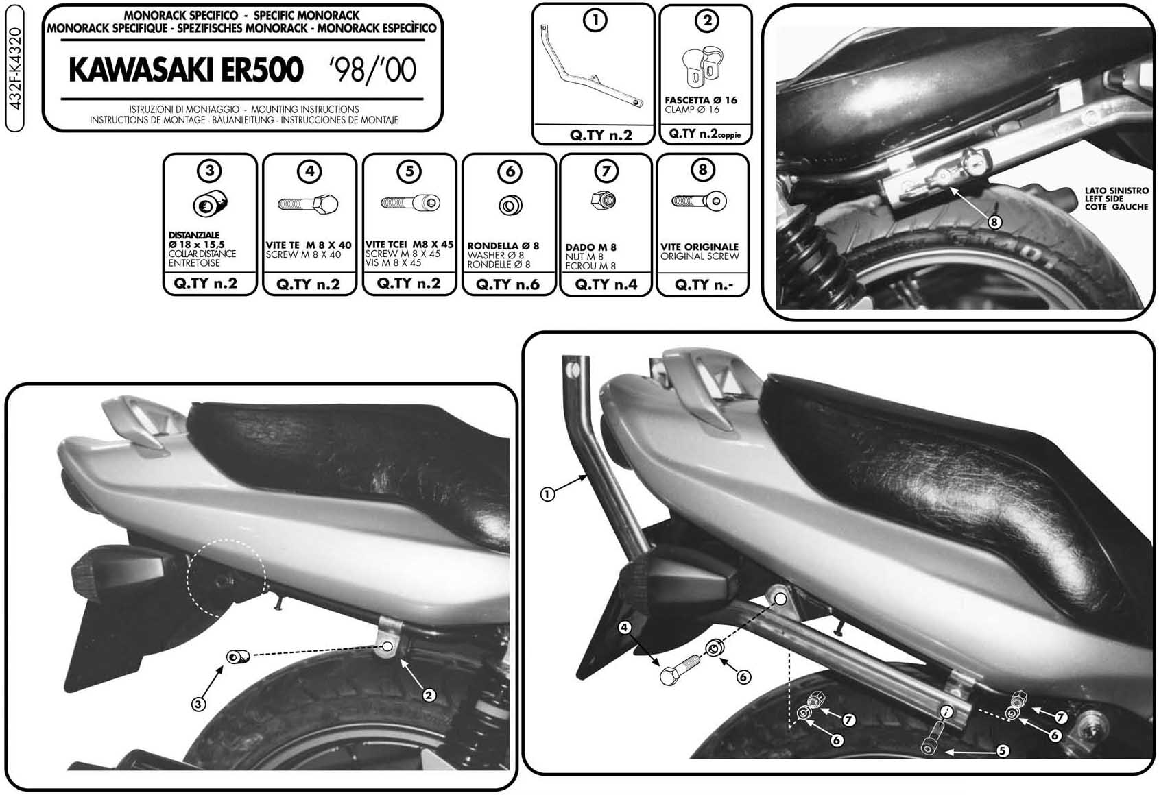 KAPPA K4320 - montážna sada (pre TOP CASE) KAWASAKI ER 500 A Twister 98-00
